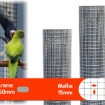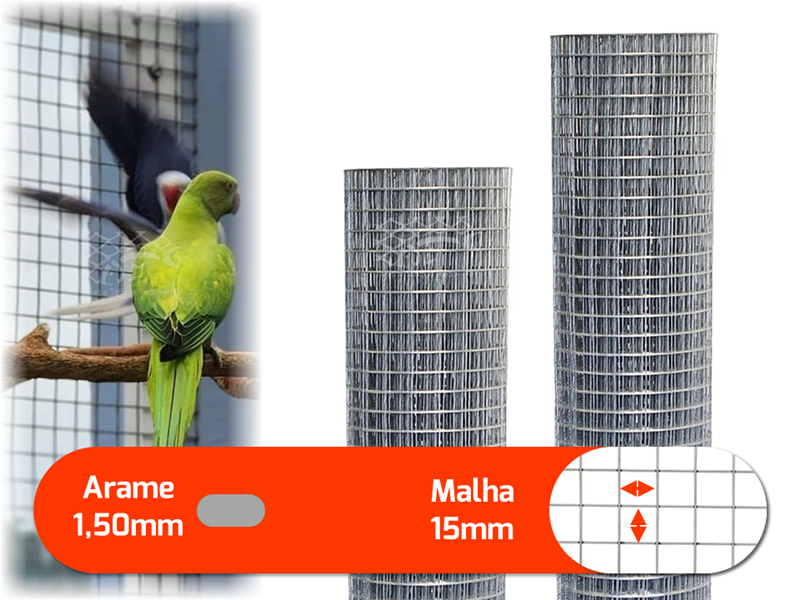 Malha: 15mm (1,5cm – pouco mais fechada que uma moeda de 10 centavos), ideal para manter as aves seguras, sem risco de escaparem.